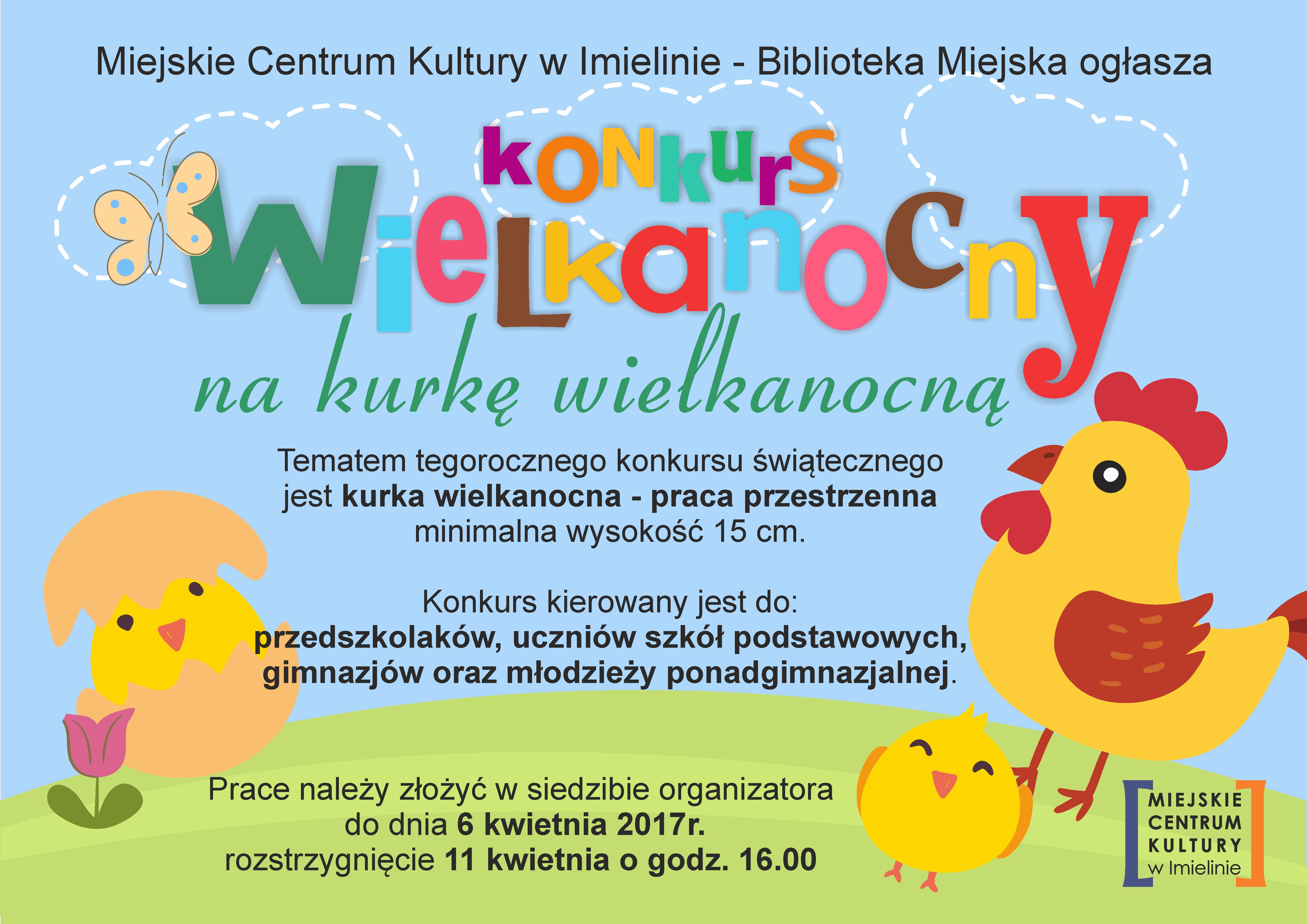 MCK w Imielinie - Biblioteka Miejska zaprasza dzieci i młodzież do przygotowania konkursowej pracy przestrzennej - kurki wielkanocnej