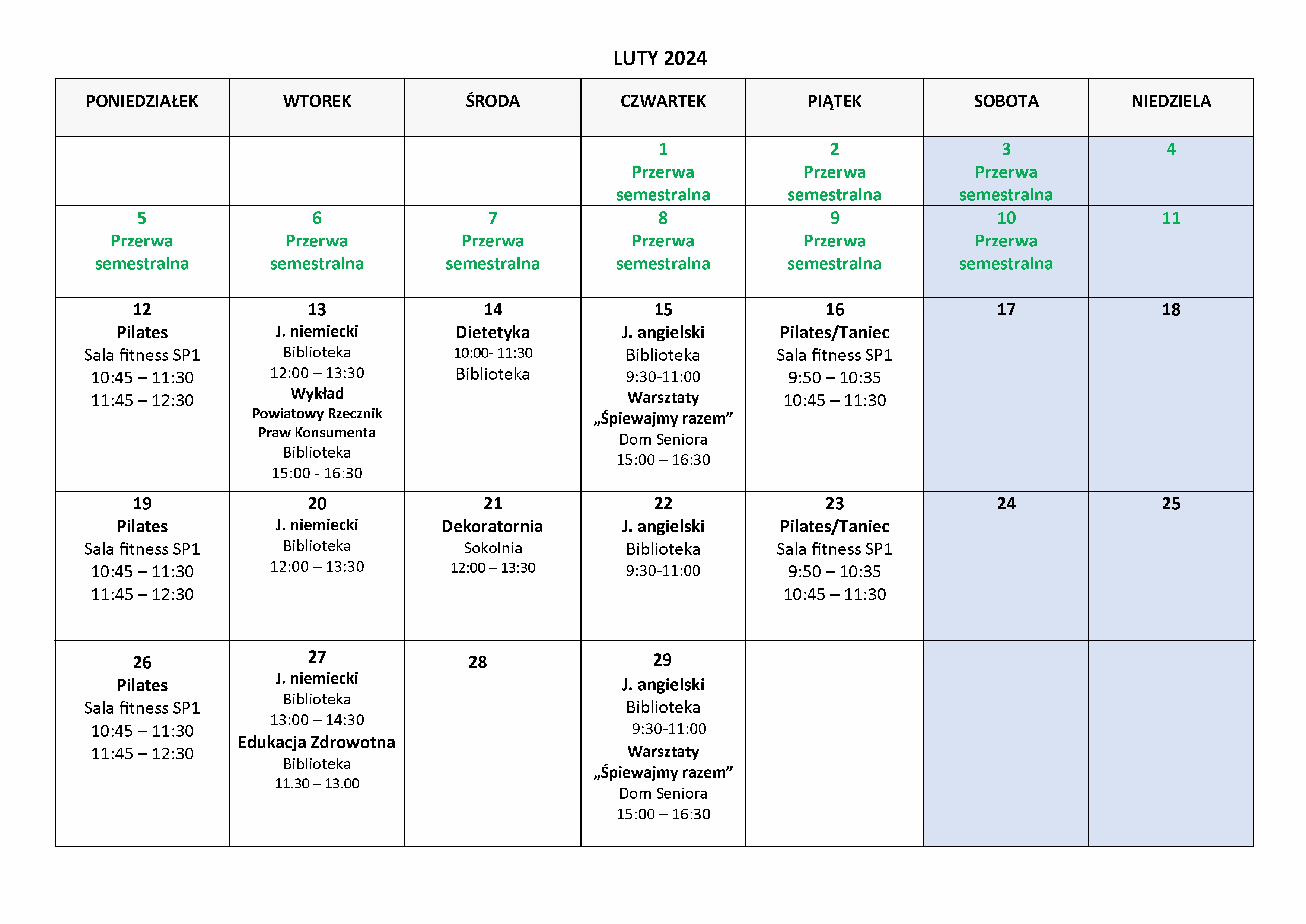 Drodzy słuchacze informujemy, że od poniedziałku 12 lutego rozpoczyna się II semestr Uniwersytetu Trzeciego Wieku w Imielinie. Zapraszamy do zapoznania się z harmonogramem.