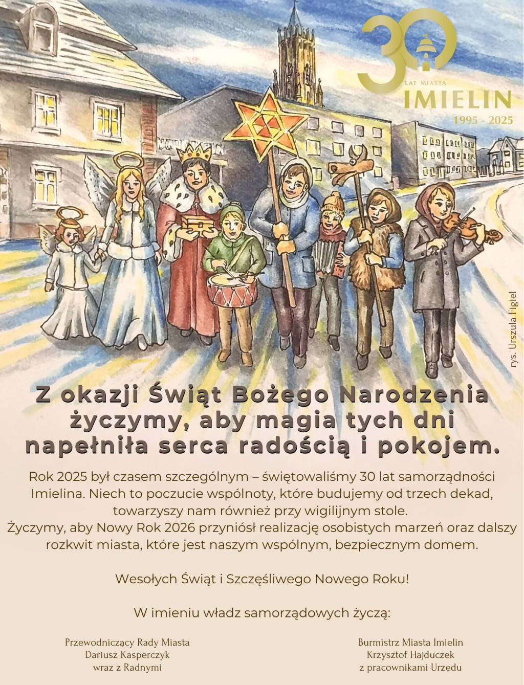 Rok 2025 był czasem szczególnym – świętowaliśmy 30 lat samorządności Imielina. Niech to poczucie wspólnoty, które budujemy od trzech dekad, towarzyszy nam również przy wigilijnym stole.