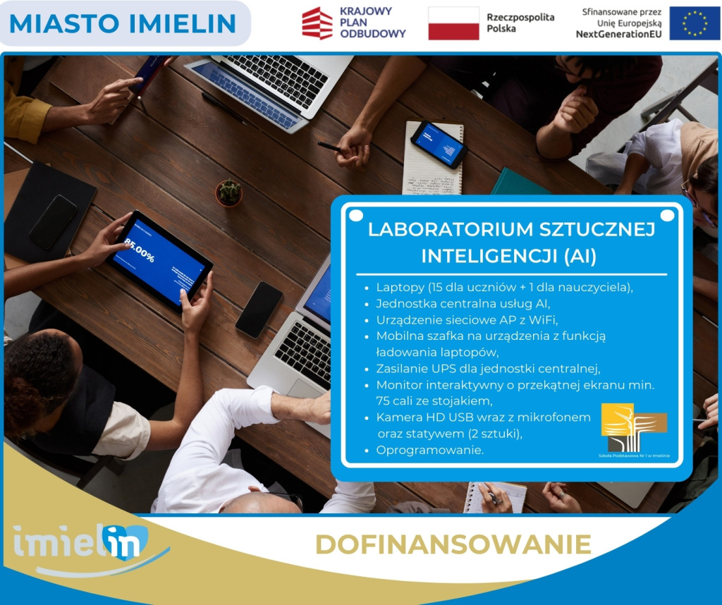Miasto Imielin w dniu 22 stycznia 2026 roku podpisało umowę ze Skarbem Państwa - Ministrem Cyfryzacji na nieodpłatne przekazanie sprzętu w ramach „Wdrażanie inwestycji C2.2.1 Wyposażenie szkół/instytucji w odpowiednie urządzenia i infrastrukturę ICT w celu poprawy ogólnej wydajności systemów edukacji, wskaźnik C13L Laboratoria sztucznej inteligencji (AI) oraz laboratoria nauk przyrodniczych, technologii, inżynierii i matematyki (STEM) utworzone w szkołach”.